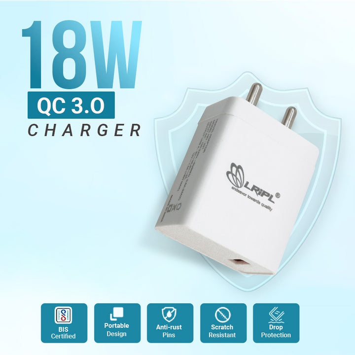 LRIPL 18W QC Wall Charger LRIPL231 USB Type A Port Quick Charge Fast Charging Travel Adapter For Mobile Phones